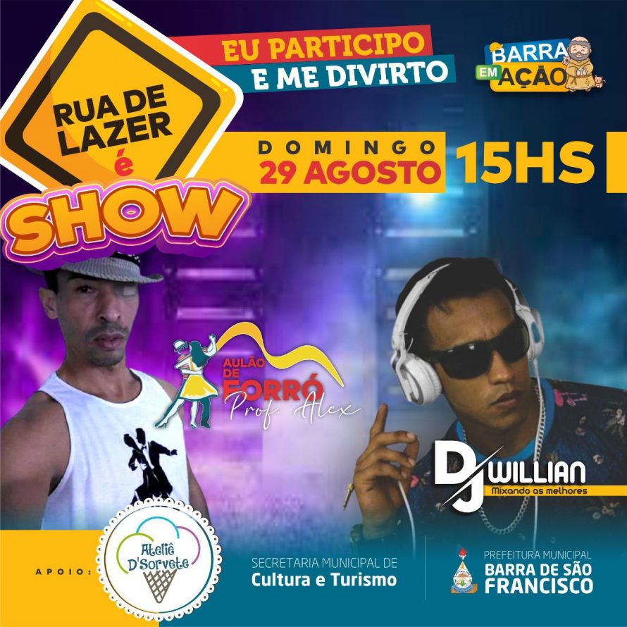 – Aulão de forró, ministrada pelo professor Alex, e na sequência, muita musica, remixada pelo Dj Willian.